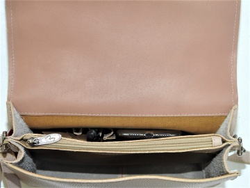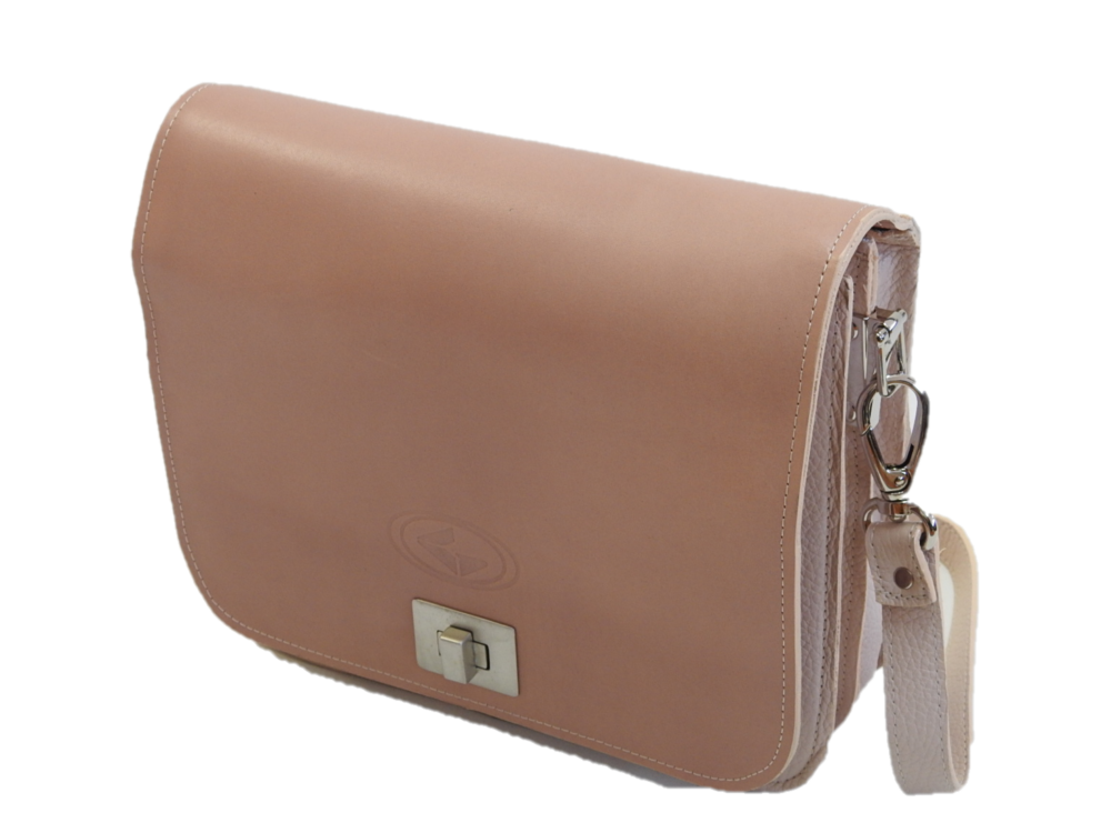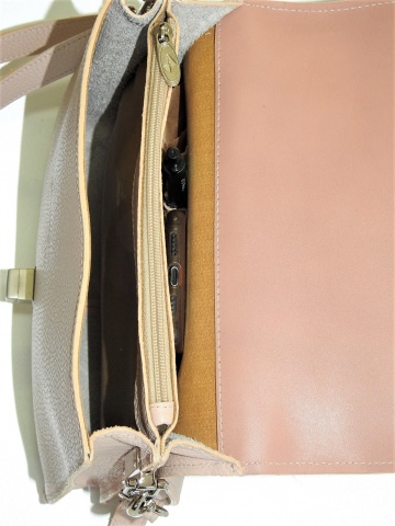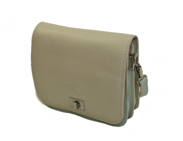 Modna ženska torbica dimenzije 25 x 22 x 8 cm.Ima dva predala in sredinski predal na zadrgo+ predal za mobilni telefon ter 2 svinčnika. Torbica ima po dolžini nastavljiv pas za nošenje.