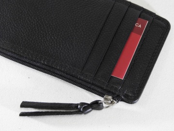 Usnjen etui za kartice + denar 3571 je praktičen etui za 8 kartic. Sredinski predal na zadrgo pa je namenjen shranjevanju denarja