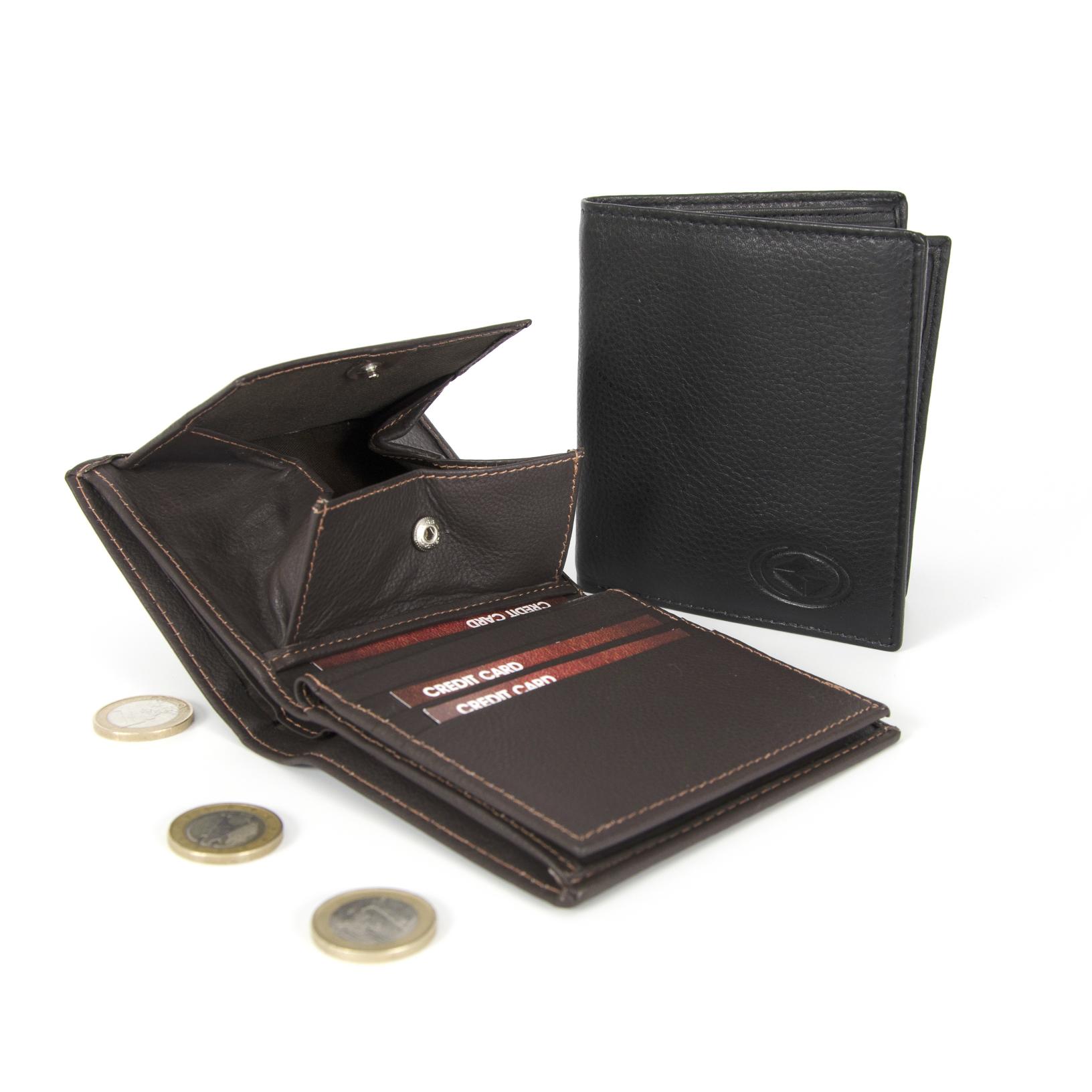 Denarnica malega formata, a vseeno prostorna, saj vam ponuja dva predala za denar, osem predalčkov za kartice in dva dodatna predale v katere lahko spravite odvečne kartice in vizitke. Denarnica ima prostoren predal za kovance. Tovrsten predal omogoča kovancem, da se poravnajo po celi širini, kar občutno stanjša debelino denarnice.