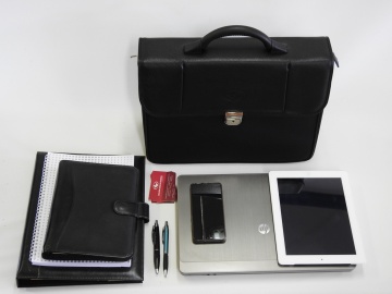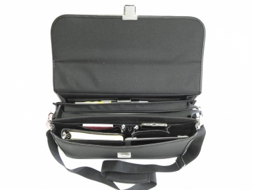 Poslovna aktovka kombinirana iz trpežnega platna in usnja. Notranjost - 2 lepo dodelana predala od tega en predal z zadrgo, ki je namenjen za prenosnik. Zunanjost - 2 predala. 1 predal je ozek v drugem je prostor za mobilni telefon n kartice ter druge drobnarije; + pas za čez ramo.