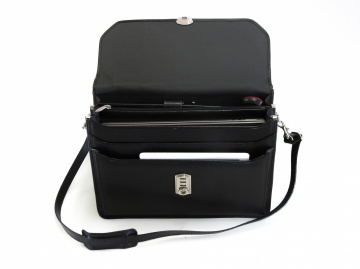 Poslovna torba narejena iz rahlo svetlečega goveje usnje z velikimi pozornosti na detajle, je prava izbira za elegantne poslovneže. V notranjosti ima lepe dodelane predale, ki so dovolj prostorni za nošenje prenosnika 15,4 in so lepo obrobljeni z usnjem. Poleg velikih predalov ima torba tudi veliko manjših predalov, ki skrbijo za red v torbi.