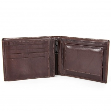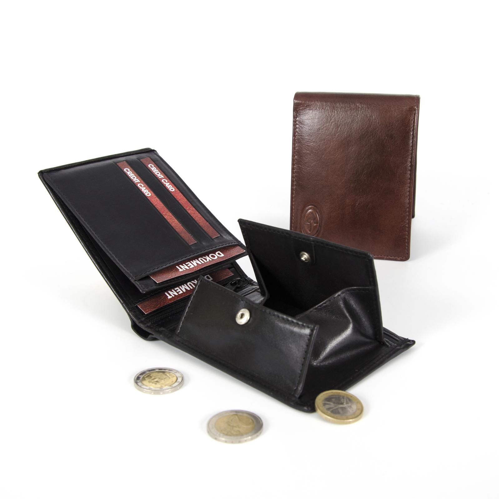 Moška denarnica iz kakovostnega goveja usnja dolgo ohranja svojo obliko in deluje elegantno. Ponuja 8 predalov za kartice, 6 dodatnih predalov za dokumente, preostale kartice, vizitke ali slike in dva predala za denar. Ima zadrgo, kjer lahko varno zaprete denar ali druge vredne stvari. Denarnica ima prostoren predal za kovance. Tovrsten predal omogoča kovancem, da se poravnajo po celi širini, kar občutno stanjša debelino denarnice.