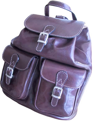 Velik usnjen nahrbtnik. Notranjost -1 lepo dodelan predal, hrbtni predalček z zadrgo,prostor za kartice in mobitel; Zunanjost - Vidna 2 žepka z zapiranjem na magnet.